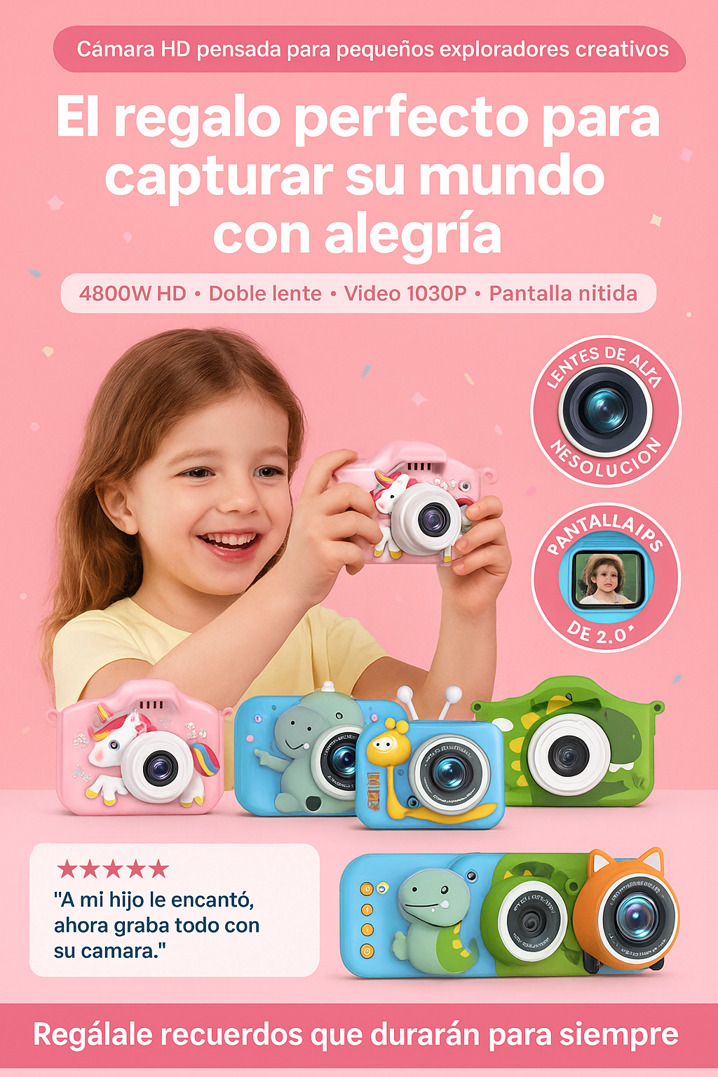 Tecnología de 20 megapíxeles que transforma a tu hijo en fotógrafo, capturando recuerdos nítidos con batería para días completos de aventura continua.