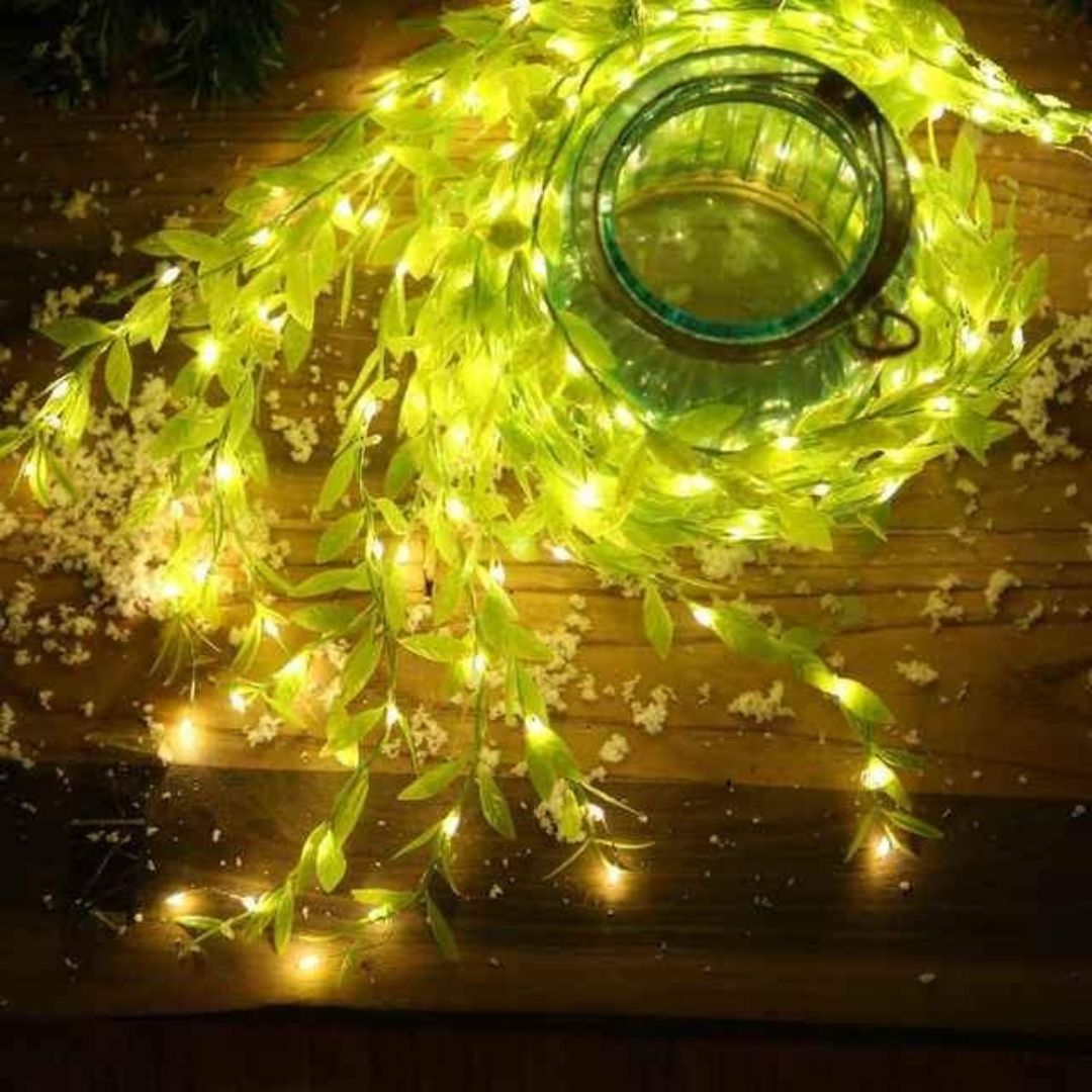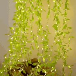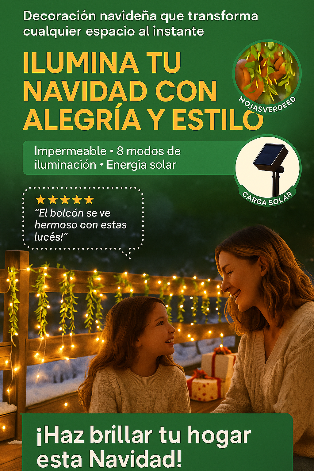 Con panel solar integrado, esta guirnalda se carga con el sol y brinda hasta 12 horas de luz cálida y natural. Ideal para noches románticas, fiestas o simplemente relajarte bajo un cielo artificial de hojas brillantes.