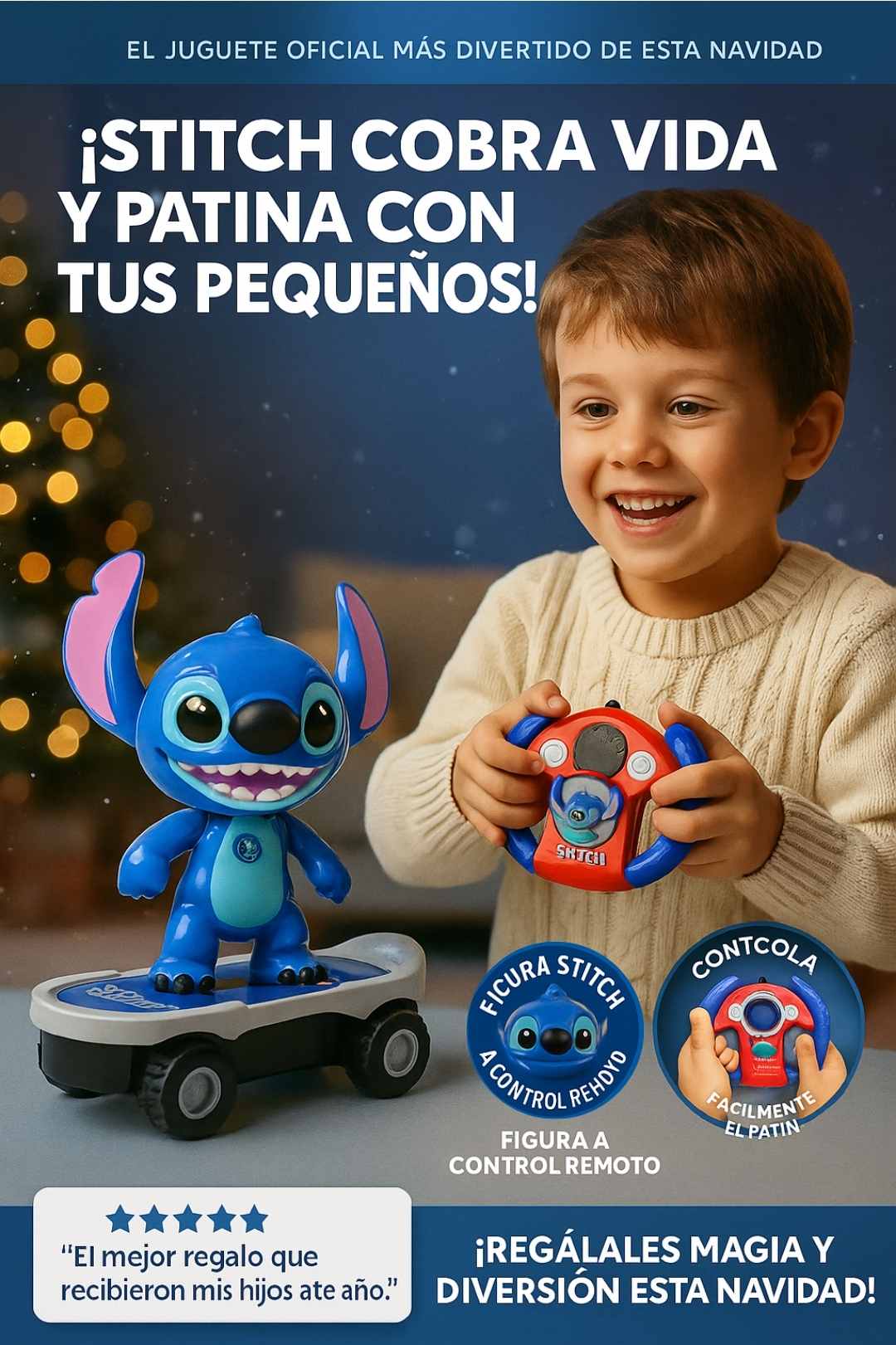 Este Stitch en patineta no es un juguete cualquiera: se mueve, gira, brilla y mantiene a los niños entretenidos por horas. Perfecto para cumpleaños, detalles especiales o simplemente para hacer sonreír a tu pequeño.