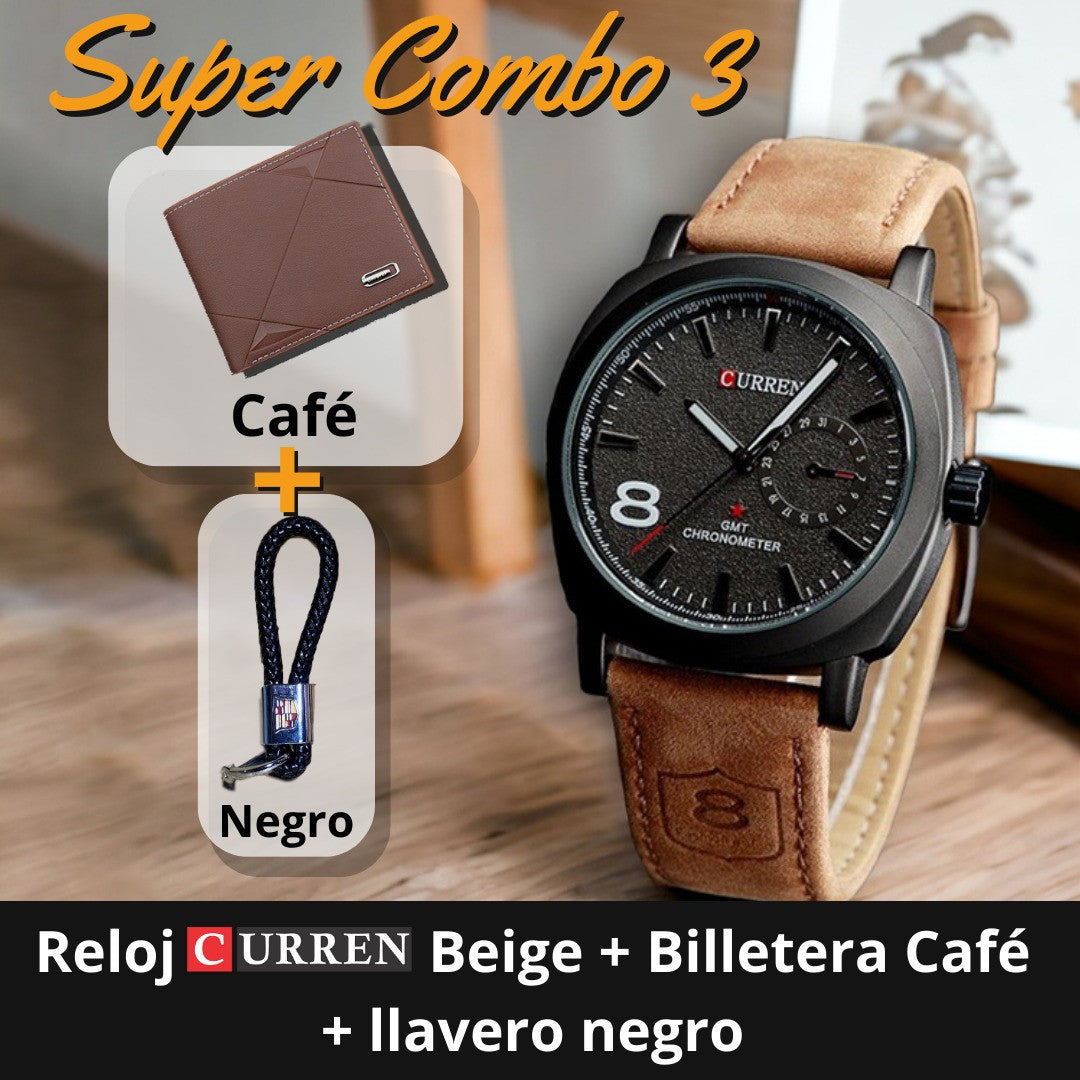 Super combo billetera + reloj + llavero