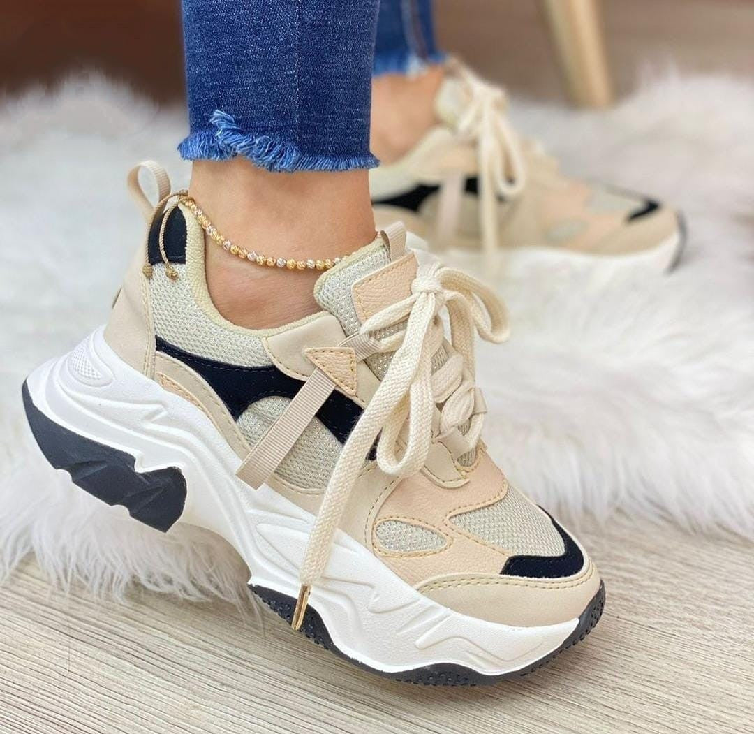 TENIS BEIGE CON NEGRO SUELA ALTA