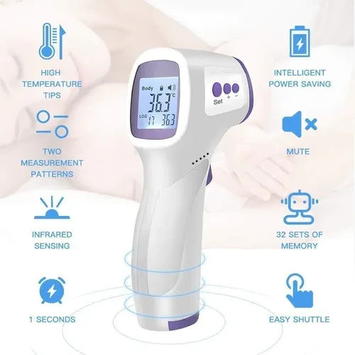-Limpio e higiénico: mide la temperatura de la frente sin contacto, mide a una distancia de 3 a 5 cm, no toca la piel humana. Previene la infección cruzada.